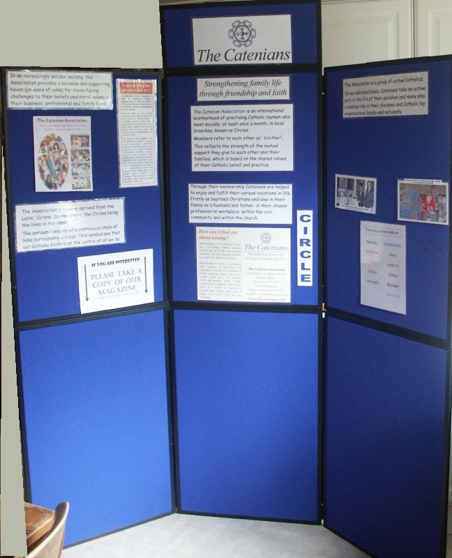 A more traditional system based on folding boards that take posters attached by "velcro". Each board measures 900mm high by 600mm wide. The headboard measures 250mm tall. The package folds down to the size of one board (900x600)