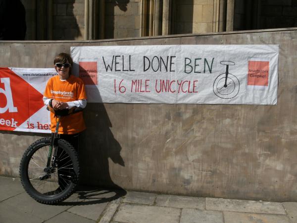 Thank all those who sponsored my Grandson Ben on his unicycle ride from Selby Abbey to York Minster. He completed the run and raised £2195 for the Anaphylaxis campaign.